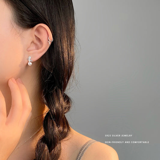 E廠【YC9986E】S925純銀精美蝴蝶結珍珠耳環女小巧百搭少女感甜美耳飾品 24.04-3