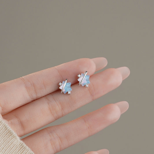 E廠【YC9984E】S999足銀輕奢藍色星星星球耳環女仙氣2025爆款新款耳環 25.03-2