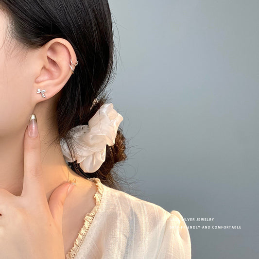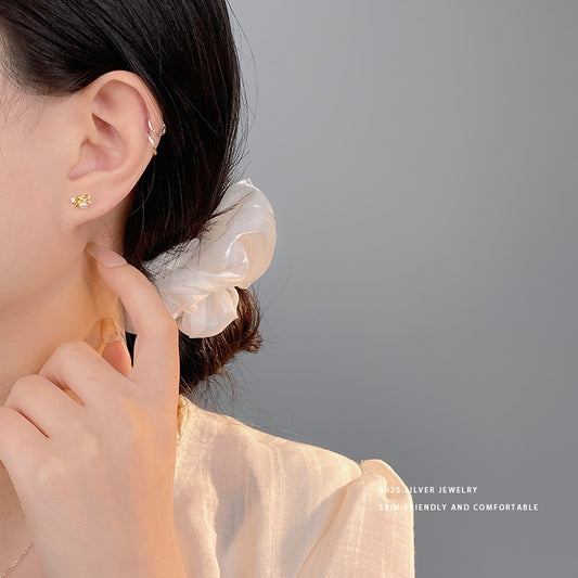 E廠【YC9994E】S925純銀甜美蝴蝶結四芒星耳環女夏季新款百搭時尚耳飾品 24.04-4