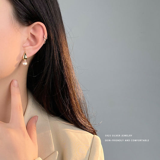 E廠【YC9991E】S925純銀重工雙色後掛式水滴耳環女時尚帥氣百搭新款耳環 24.04-4