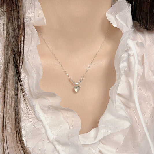 F廠【DQ0037N】S925純銀天然白玉髓愛心項鍊女輕奢小眾高級感閃鋯百搭鎖骨鏈 25.09-3