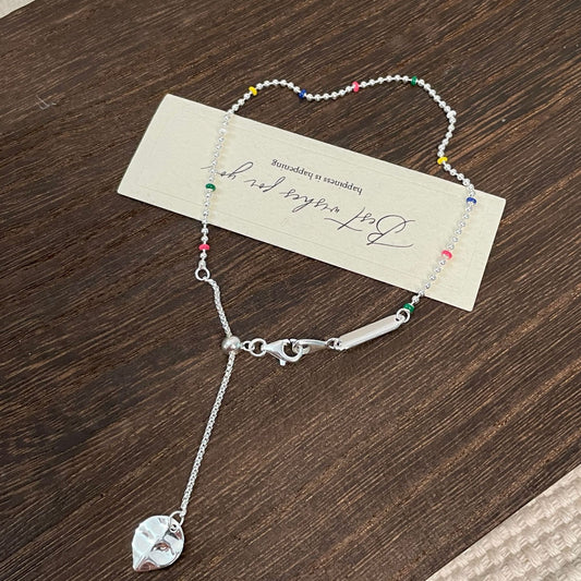 F廠【DQ0033J】S925純銀彩色圓珠腳鍊女簡約時尚拉式腳環DIY設計百搭腳鍊 25.07-4
