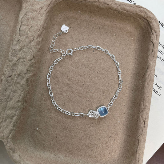 F廠【DQ0019S】ins小眾設計海藍寶方塊豬鼻子手鍊女S925純銀精緻高級感手飾 25.09-1