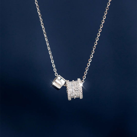 F廠【DQ0031N】S925純銀時尚簡約方糖鋯石項鍊女水波鏈通勤百搭冷淡風鎖骨鏈 25.09-1