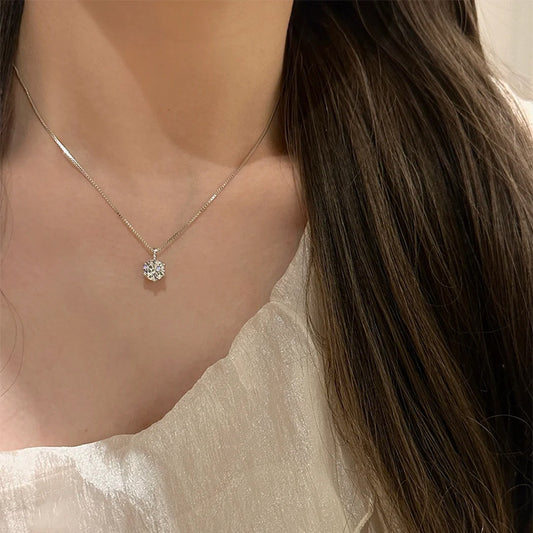 F廠【DQ0024N】S925純銀簡約六爪單鑽項鍊女輕奢高級感閃鋯吊墜百搭鎖骨鏈潮 25.09-3
