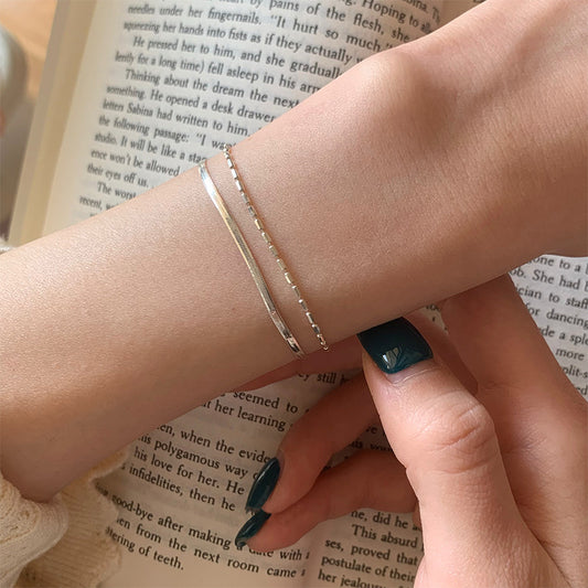 F廠【DQ0035S】S925純銀韓版雙層蛇骨鍊手鍊女ins簡約橄欖珠百搭疊戴手飾潮 25.09-2