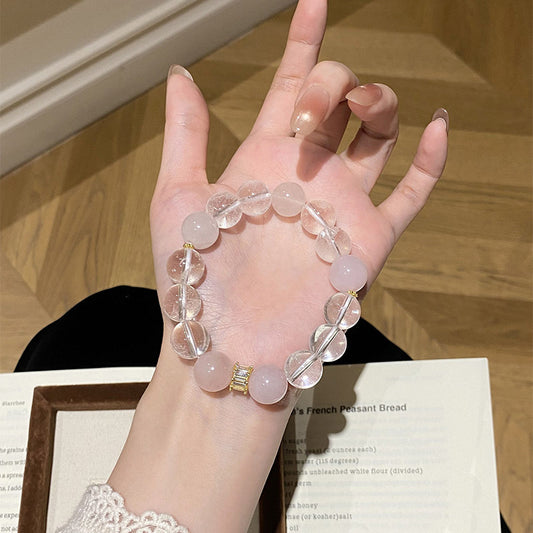 F廠【DQ0108S】天然白水晶手串S925純銀精緻感閃鑽手環女粉水晶高級手飾 25.03-4