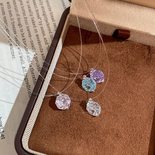 F廠【DQ0137N】S925純銀千禧玫瑰切單鑽項鍊女高級感爆閃隱形魚線疊戴鎖骨鏈 25.08-5