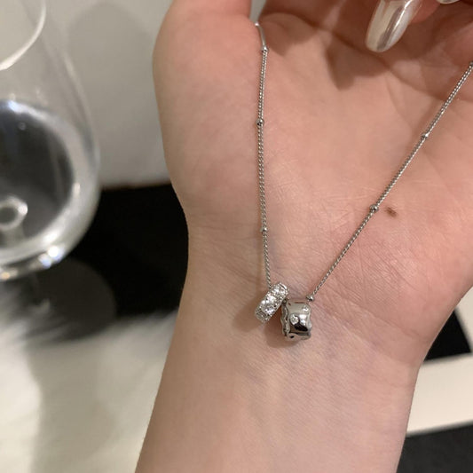 F廠【DQ0108N】S925純銀韓版雙圈閃鑽項鍊女高級感輕奢小眾圓環鋯石鎖骨鏈潮 25.09-2