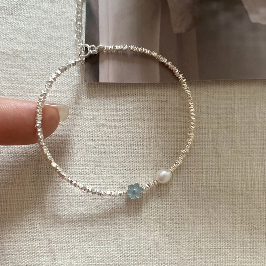 F廠【DQ0105S】簡約小眾淡水珍珠花朵手鍊女S925純銀森系甜美碎銀子氣質手飾 25.08-5