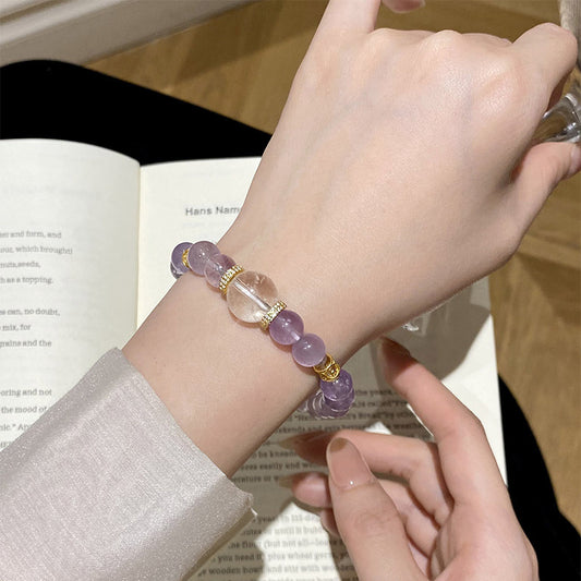 F廠【DQ0106S】輕奢小眾天然紫水晶手串女S925純銀高級白水晶小紅書手飾 25.03-4