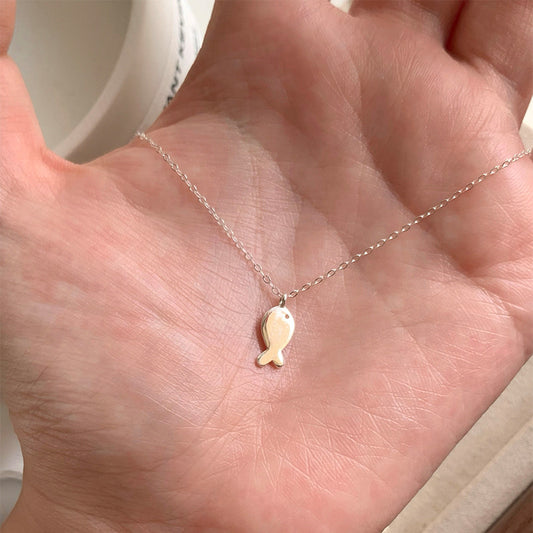 F廠【DQ0104N】日韓簡約小魚餅項鍊女S925純銀精緻百搭小魚鎖骨鏈 25.09-2