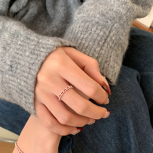 F廠【DQ0144S】冠軍同款S925純銀圓珠紅繩手鍊精緻輕奢手工編織戒指疊戴手飾 25.02-3