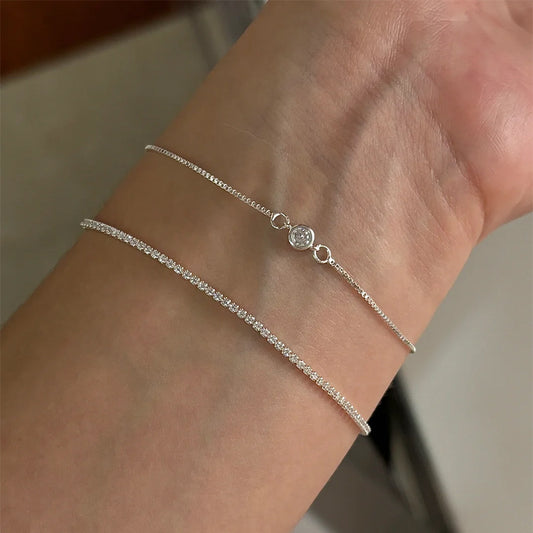 F廠【DQ0283S】S925純銀精緻小巧泡泡圓鑽手鍊女簡約時尚單鑽極細疊戴手飾潮 25.08-1