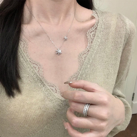 F廠【DQ0285N】簡約時尚轉轉雪花項鍊女S925純銀輕奢設計閃鑽冰晶雪花鎖骨鏈 25.09-1