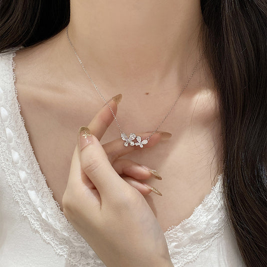 F廠【DQ0350N】足銀999精緻超閃蝴蝶項鍊女輕奢小眾滿鑲鋯石高級感鎖骨鏈潮 25.07-2