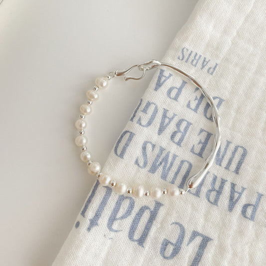 F廠【DQ0305S】S925純銀天然淡水珍珠半環手鍊女輕奢小眾手工串製珍珠手飾潮 25.02-2