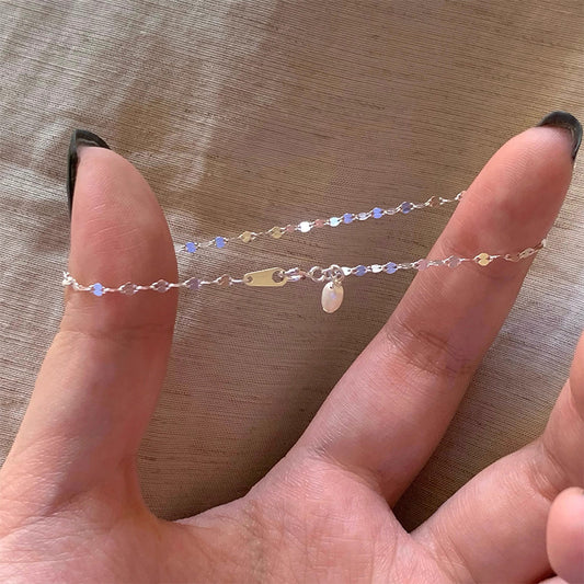 F廠【DQ0304S】S925銀波光粼粼亮片珍珠手鍊女小眾設計淡水珍珠疊戴手飾韓版 25.05-4