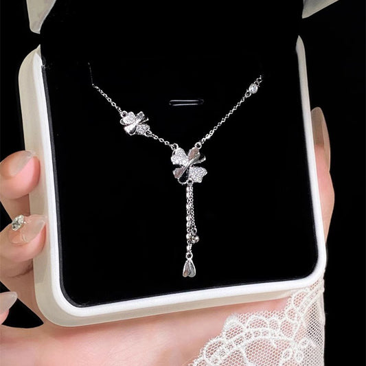 F廠【DQ0331N】足銀999輕奢小眾四葉草項鍊女高級感流蘇閃耀花朵精緻鎖骨鏈 25.05-4