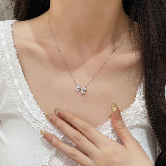 F廠【DQ0318N】999純銀高級輕奢蝴蝶結迷你簡約鑲銀色石靈動鎖骨鍊女 25.07-4