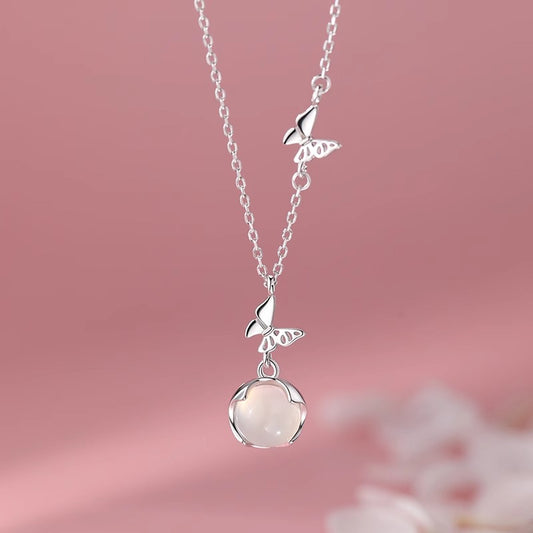 F廠【DQ0313N】足銀999輕奢小眾蝴蝶白玉髓項鍊女森系高級感純銀鎖骨鏈百搭 25.07-2