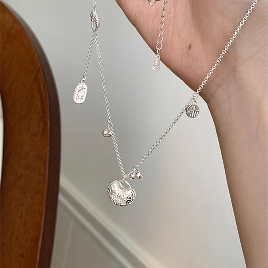 F廠【DQ0400N】S925純銀國風新中式福包吊墜項鍊女大吉大利福牌高級感鎖骨鏈 25.03-3