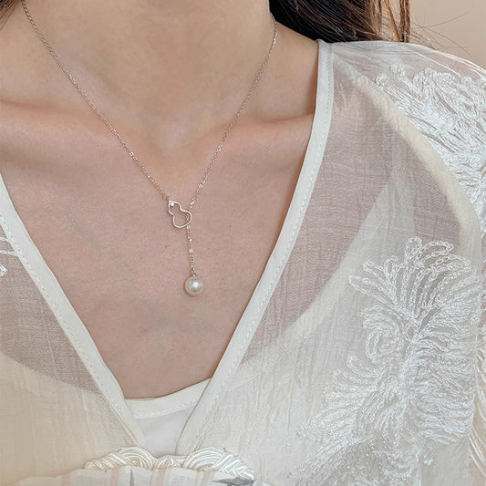 F廠【DQ0444N】S925純銀新中式輕奢葫蘆項鍊女高級感仿珍珠流蘇鎖骨鏈潮百搭 25.07-4