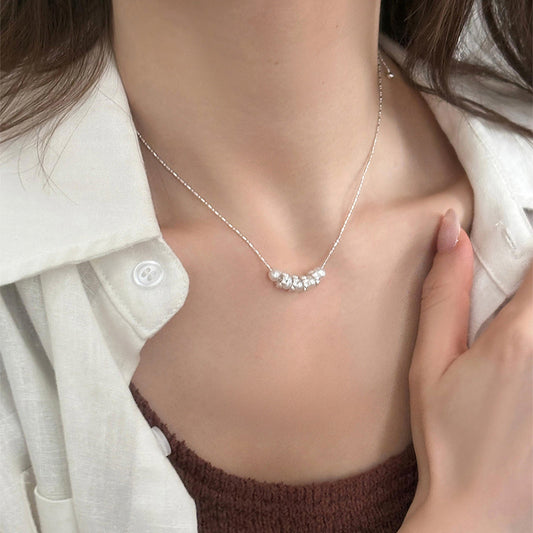 F廠【DQ0381N】法式復古施家仿珍珠項鍊女S925純銀單鑽路通高級感鎖骨鏈潮 25.06-3