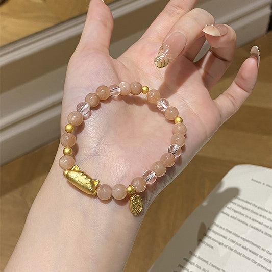 F廠【DQ0369S】天然白水晶太陽石手串女S925銀法棍貓納福牌手環顯白手飾 25.10-1