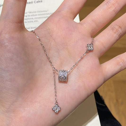 F廠【DQ0390N】S925純銀四葉草小蠻腰項鍊女輕奢高級感花朵流蘇鎖骨鏈潮 25.10-2