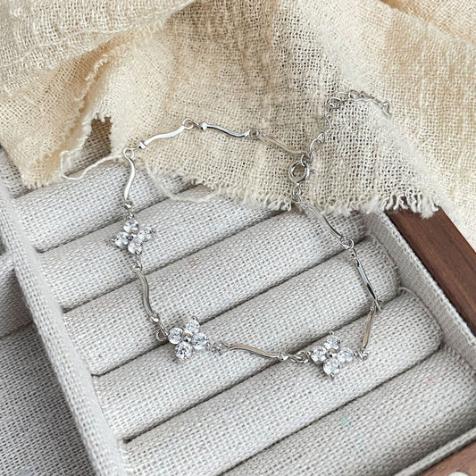 F廠【DQ0353S】小清新S999足銀四葉草手鍊女鑲鋯石輕奢設計感通勤百搭銀手飾 25.05-3