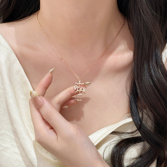 F廠【DQ0438N】S925純銀旋轉木馬項鍊女輕奢小眾設計感滿鑽馬年鎖骨鏈潮 25.10-1