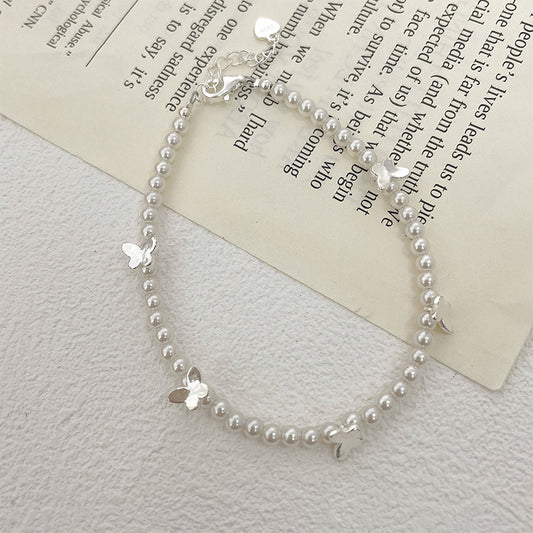 F廠【DQ0384S】ins風森系甜美蝴蝶仿珍珠手鍊女S925純銀精緻串珠手飾品 25.10-1