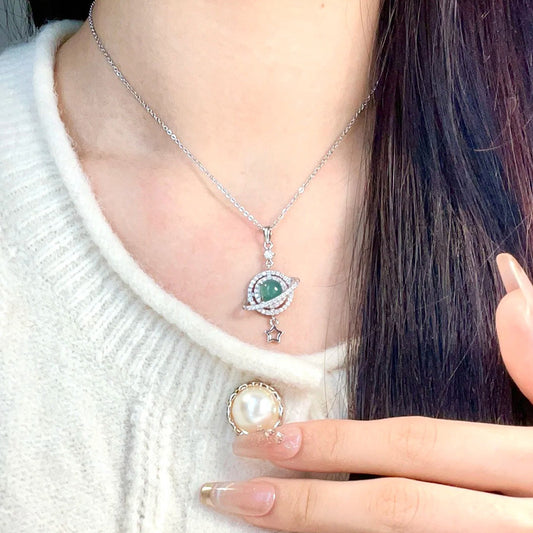 F廠【DQ0370N】S925純銀天然翡翠項鍊女夢幻星球吊墜星星鎖骨鏈小紅書爆款 25.02-4