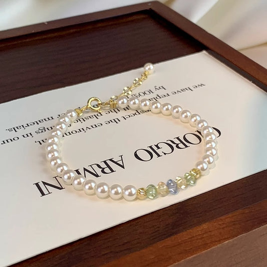 F廠【DQ0398S】S925純銀精緻施家仿珍珠手鍊女時尚ins琉璃珠精緻手飾潮 25.07-4