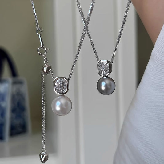 F廠【DQ0686N】S925純銀精工款方鑽正圓仿珍珠項鍊女高級感可調輕奢鎖骨鏈 25.09-4