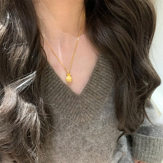F廠【DQ0673N】中古風福氣滿滿項鍊女S925純銀貴氣千金感福袋點鑽金色鎖骨鏈 25.04-3
