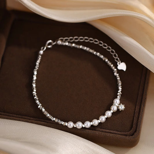 F廠【DQ0654S】S925純銀精緻簡約仿珍珠手鍊女ins風設計碎銀子小眾手飾 25.07-4