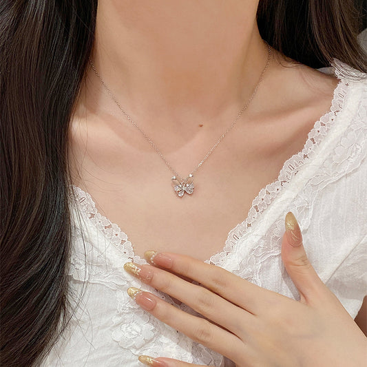 F廠【DQ0642N】足銀999鏤空蝴蝶項鍊女ins風精緻閃鑽蝴蝶純銀鎖骨鏈百搭 25.07-2