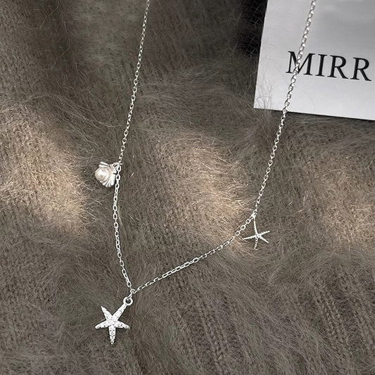 F廠【DQ0662N】S925純銀ins風海星貝殼項鍊女清新氣質仿珍珠小眾鎖骨鏈 25.04-3