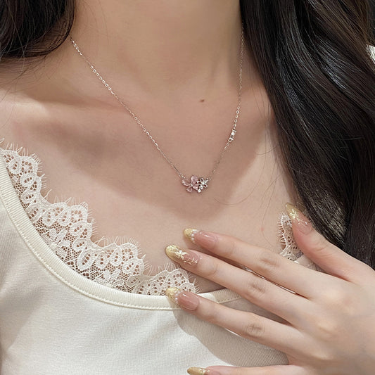 F廠【DQ0962N】S925純銀甜美小清新蝴蝶粉鋯項鍊女時尚氣質簡約花朵鎖骨鏈潮 25.09-2