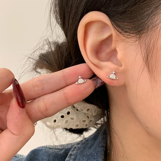 F廠【DQ10026E】ins簡約迷你小土星螺絲耳環女S925純銀精緻星球耳骨釘耳飾潮 25.04-2
