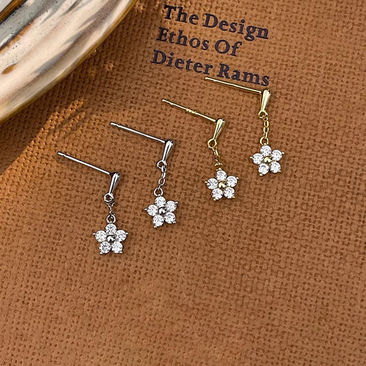 F廠【DQ10002E】精緻小巧水滴閃亮花朵耳環女S925純銀時尚個性小花耳環耳飾潮 25.06-1