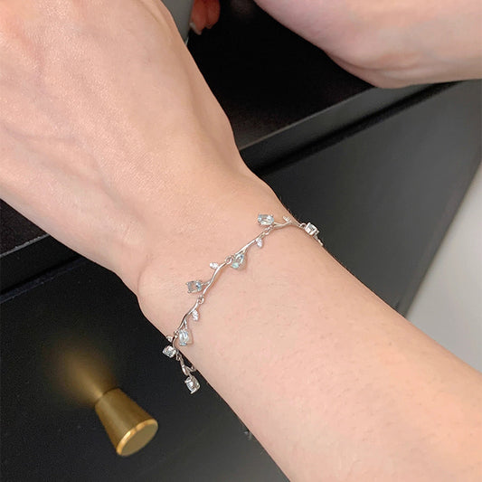 F廠【DQ0988S】精緻小眾藍枝藤蔓鬱金香手鍊女S925純銀森系甜美鋯石百搭手飾 25.08-1
