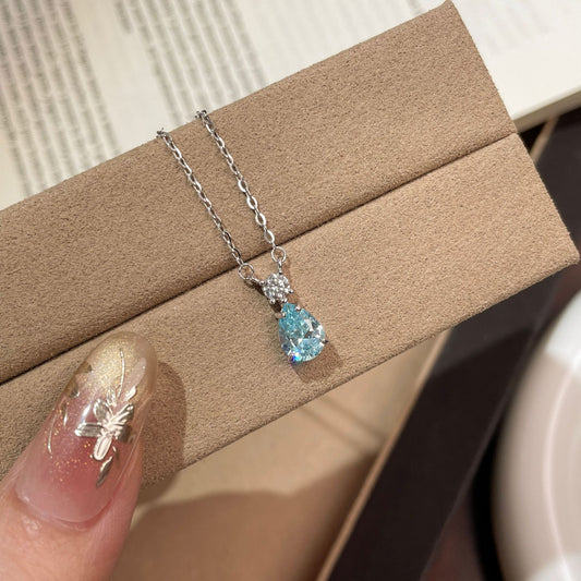 F廠【DQ0920N】輕奢小眾高級感藍色水滴項鍊女S925純銀時尚精緻中古風鎖骨鏈 25.08-2