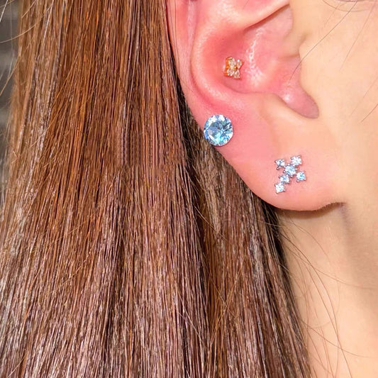 F廠【DQ10021E】足銀999日韓精緻彩色鋯石耳扣女時尚精緻耳骨釘疊戴耳飾百搭 25.06-4