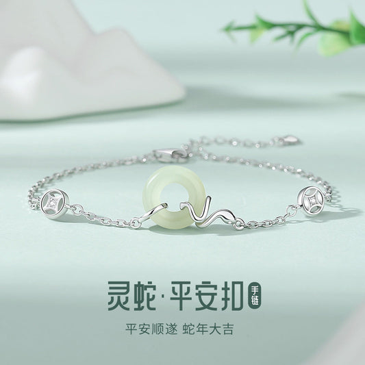 F廠【DQ0978S】原創靈蛇平安扣手鍊女S925純銀新中式中國風高級感與田玉手飾 24.12-3