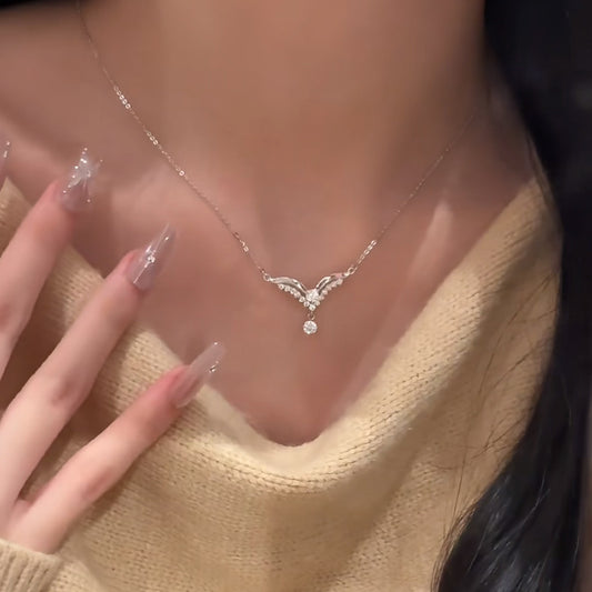 F廠【DQ0986N】S925純銀輕奢精緻天使之翼項鍊女高級感鋯石羽翼氣質鎖骨鏈潮 25.10-3