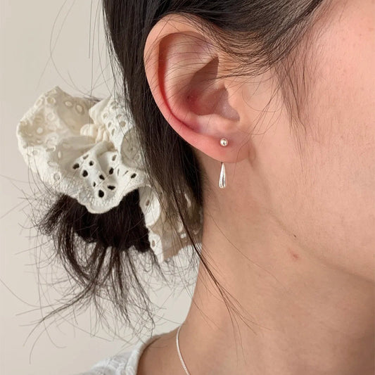 F廠【DQ10014E】999足銀個性簡約水滴耳環女精緻氣質後掛式螺絲轉扣耳環耳飾 25.04-3