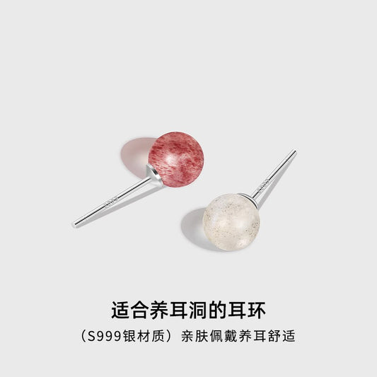 F廠【DQ10029E】足銀999簡約清新草莓晶月光石耳環女時尚精緻天然石純銀耳飾 25.04-4